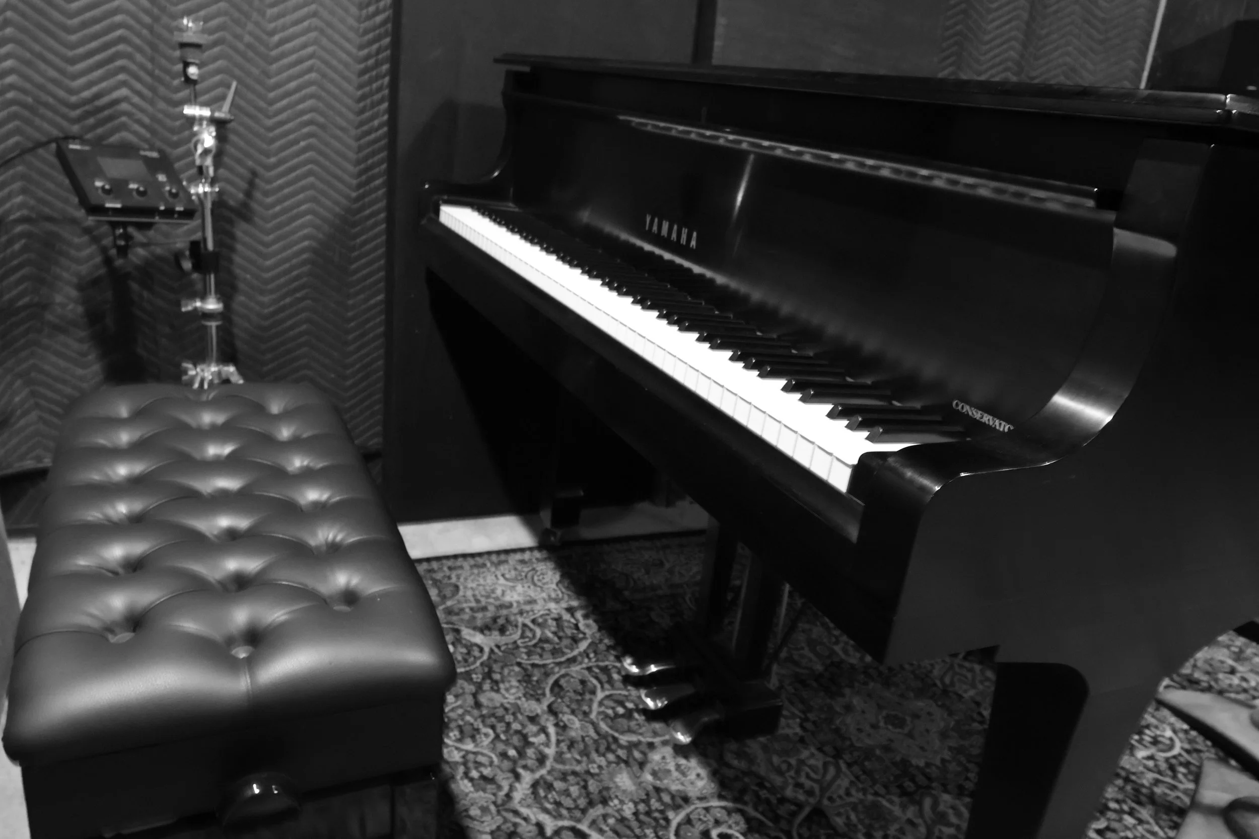 The vintage keyboard selection here is unbelievable. Yamaha C3 grand piano, Baldwin upright, Fender Rhodes, Hammond organ and Leslie combo, Wurlitzer 200a, Hohner Clavinet, Yamaha CP70 electric piano, all restored and maintained to immaculate condition.